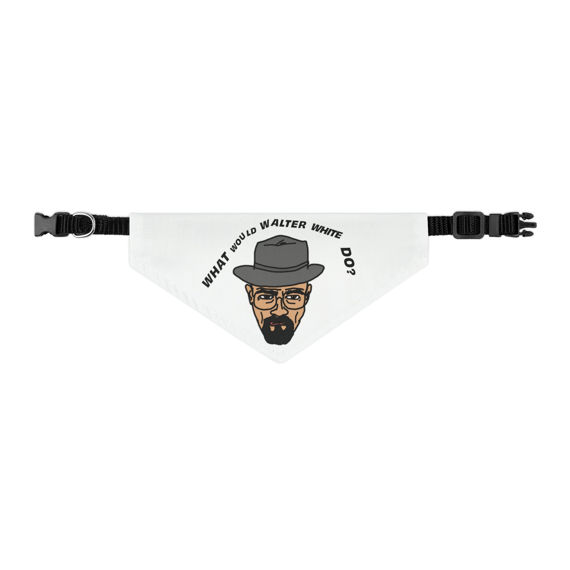 Calling all Breaking Bad fans and pet fanatics! Show off your love for the iconic TV show with the What Would Walter White Do? Pet Bandana Collar. Made of durable polyester duck fabric, this bandana collar is perfect for even the most playful pets and is machine washable for easy care. The secure fastening ensures that the bandana stays in place, even during rough and tumble play sessions. Add this unique piece to your entertainment collection and let your furry friend channel their inner Walter White. Perfect for pets who want to show off their fandom in style.