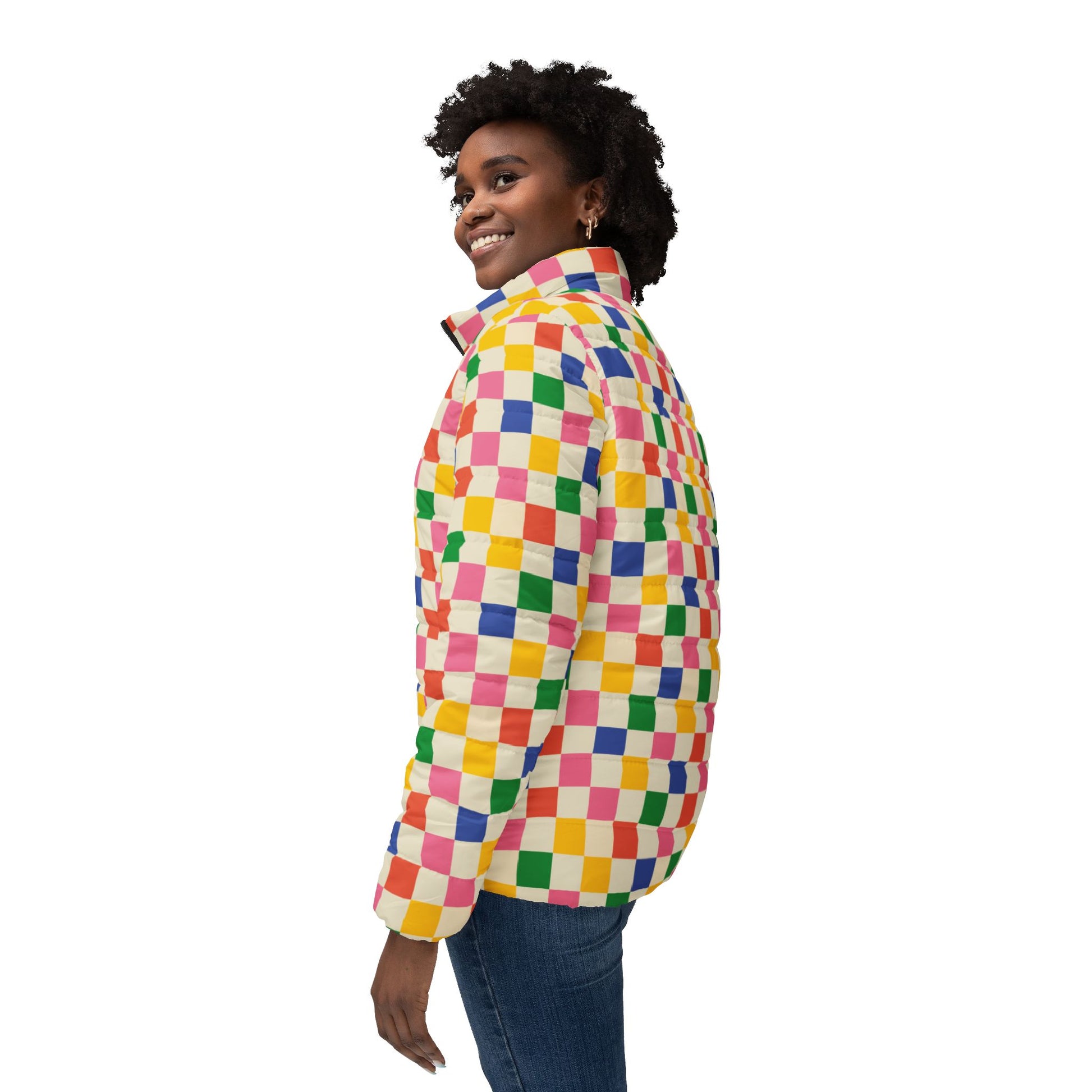 Women's Puffer Jacket - Colored Chess Pattern Skaters Apparel